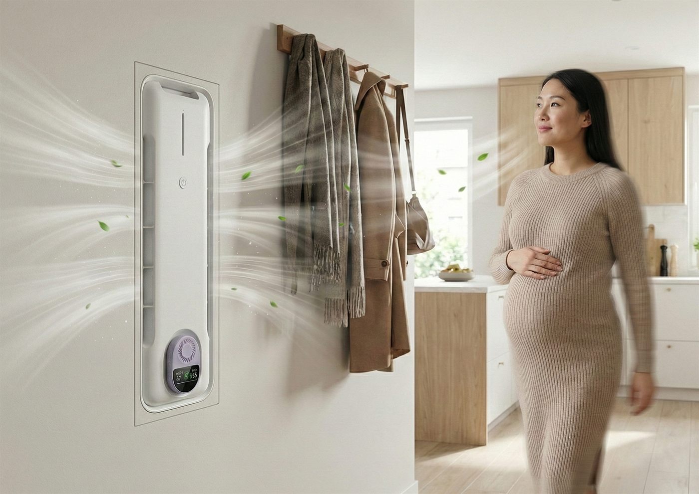 Redefining indoor air quality through the lens of maternal ergonomics—soft forms, intuitive interactions, and medical-grade purity.